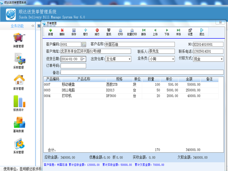 琦順達送貨單打印軟件不僅僅集成了送貨單管理、產(chǎn)品管理、客戶管理、數(shù)據(jù)分析、圖表分析等常見的送貨單打印管理功能,還集成了商品進銷存管理、應(yīng)收賬款管理、應(yīng)付賬款管理、銀行收支管理、支票打印管理、快遞單打印等等功能,在管理好送貨單的同時,您還可以管理好您的產(chǎn)品進銷存情況以及客戶欠款情況。